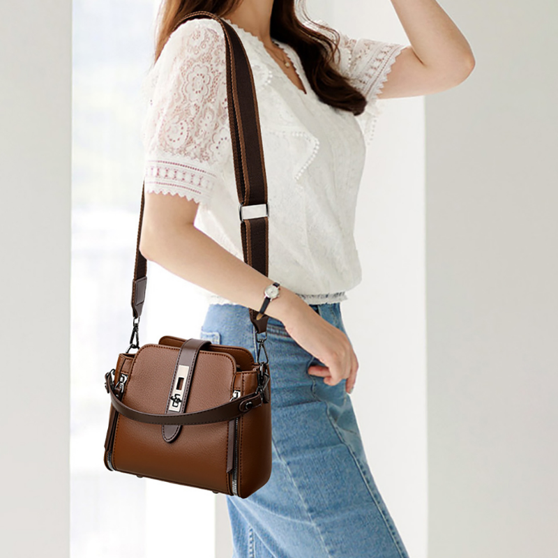 Add elegance to your everyday style with the REVLIN High-End Bucket Bag, crafted from soft PU leather and designed for modern women who love fashion with function. Its compact bucket silhouette and secure lock closure make it perfect for leisure travel or casual outings.