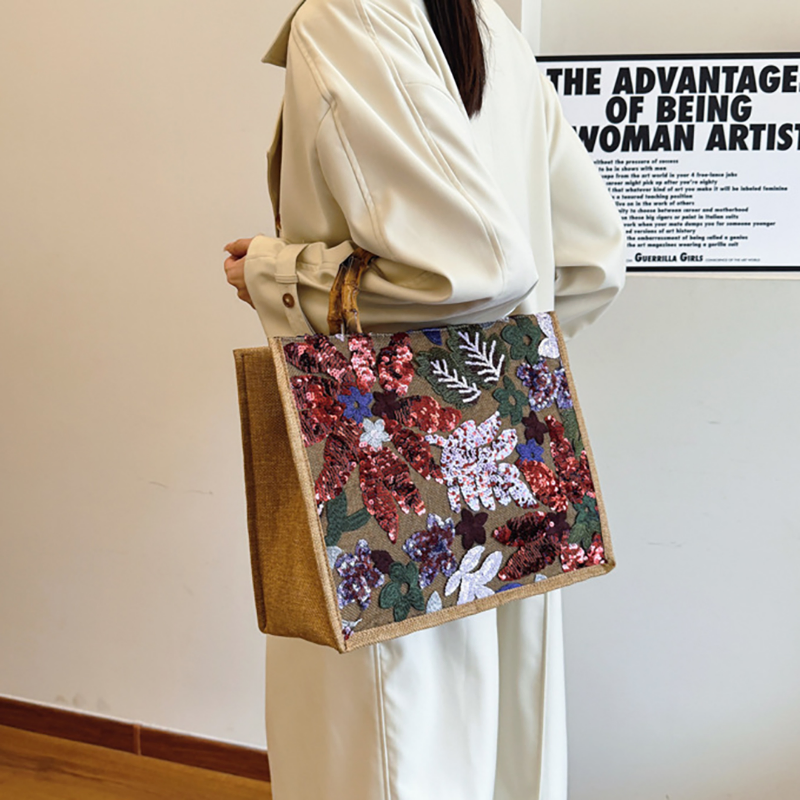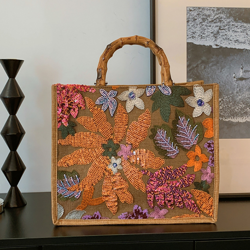 Shine with sophistication and grace with the REVLIN Luxury Floral Embroidered Tote Bag, designed for women who love a perfect mix of elegance and functionality. Its sparkling sequined mesh and delicate floral embroidery make it a true statement piece for classy everyday wear.