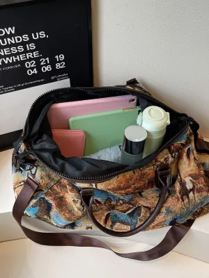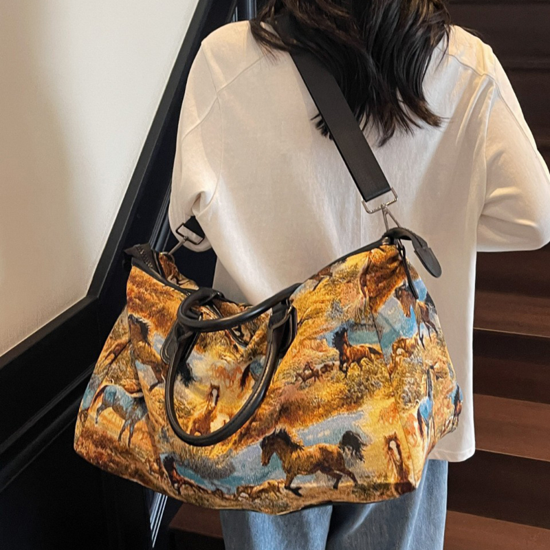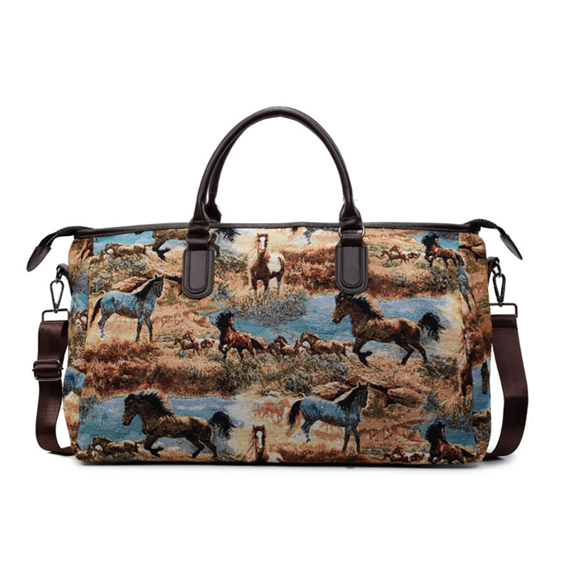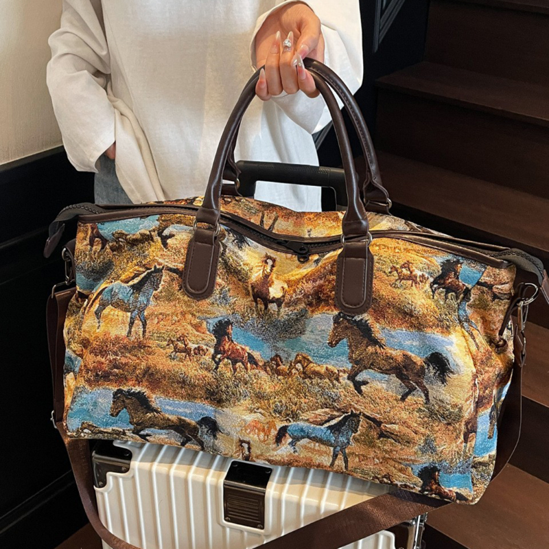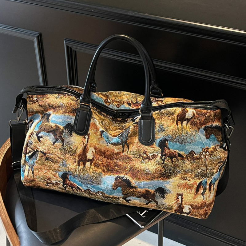 Travel in style with the REVLIN Retro Horse Design Travel Bag, crafted for those who value fashion, durability, and practicality. Its unique horse pattern and vintage-inspired look make it the perfect companion for gym sessions, sports trips, or weekend adventures.